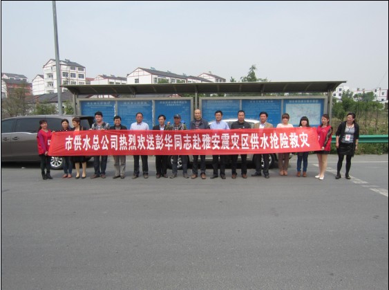 425日,荊門市供水總公司黨委書記陳永根,副總經理王宜龍等一行到荊門南高速路口歡送加壓站職工彭華隨湖北紅十字會12人供水救援隊赴雅安震災區(qū)搶險救災。出發(fā)前,該司領導囑咐彭華在災區(qū)注意自身安全;全力以赴的撲入到搶險救災工作中去;把全體供水職工“心系雅安,你我同在”的愛心帶去。彭華表示不辜負全體員工的囑托,把愛心帶到災區(qū),并保證圓滿完成搶險救災任務。