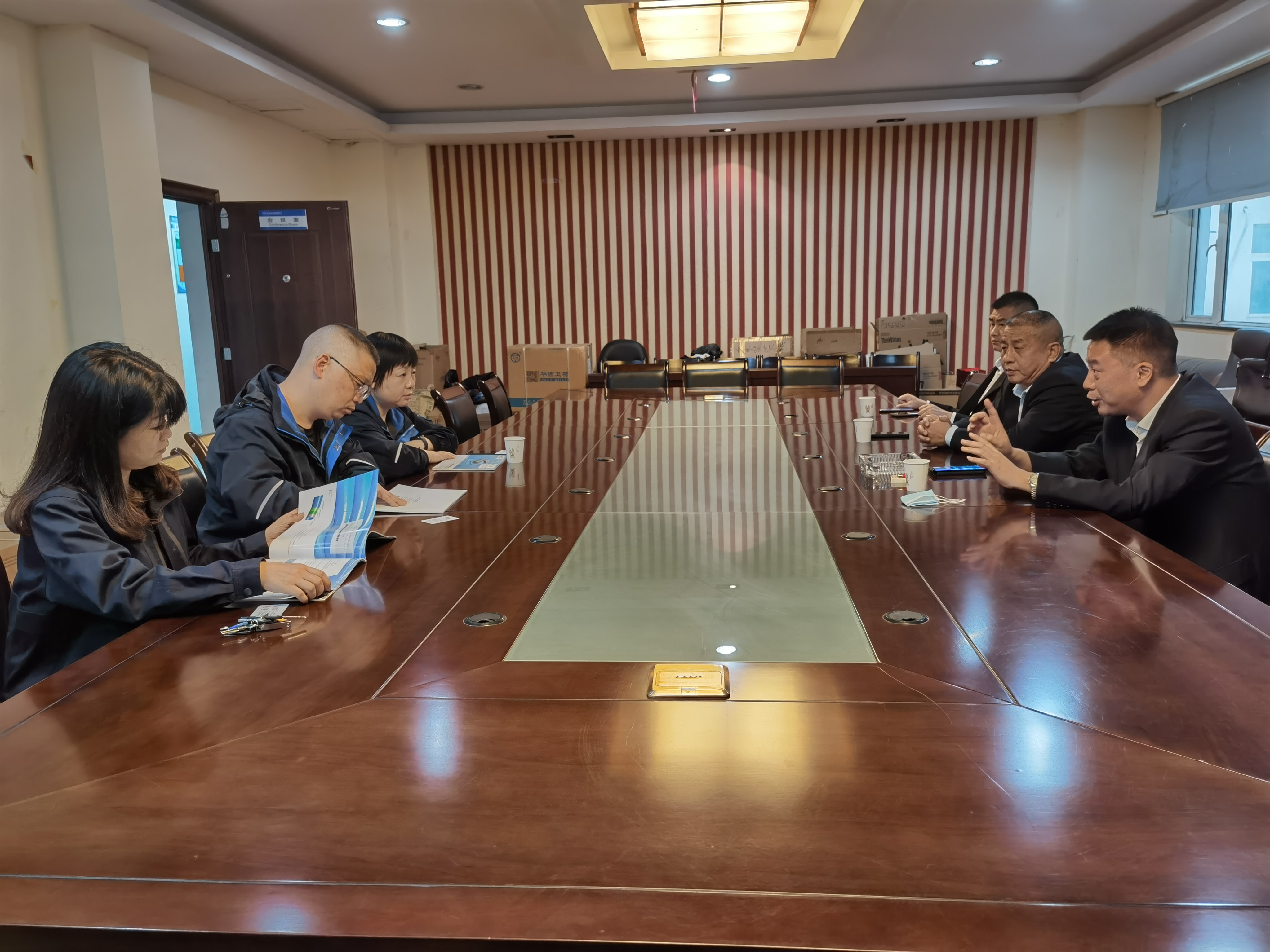 嚴巖對孝感水司一行的到來表示熱烈歡迎,她先是簡要介紹了集團公司組織架構(gòu)和物資公司基本情況,又重點分享了集團在企業(yè)文化建設(shè)、物資供應(yīng)管理等方面的成效做法。作為兄弟單位,孝感水司就新型給水管道材料應(yīng)用技術(shù)進行深入交流,在大致了解集團實際情況后,對管道敷設(shè)施工工藝、施工技術(shù)以及降本增效等相關(guān)工作提出了寶貴建議。物資公司負責(zé)人鄧澤祥表示,水務(wù)集團物資公司秉承集團企業(yè)精神,打造學(xué)習(xí)型組織,樂于學(xué)習(xí),樂于交流,通過互動,啟發(fā)了新的思路。下一步,物資公司將在創(chuàng)新工作方法上下功夫,研究國家新政策,了解行業(yè)新動態(tài),進一步提升倉儲管理和應(yīng)急保障能力。