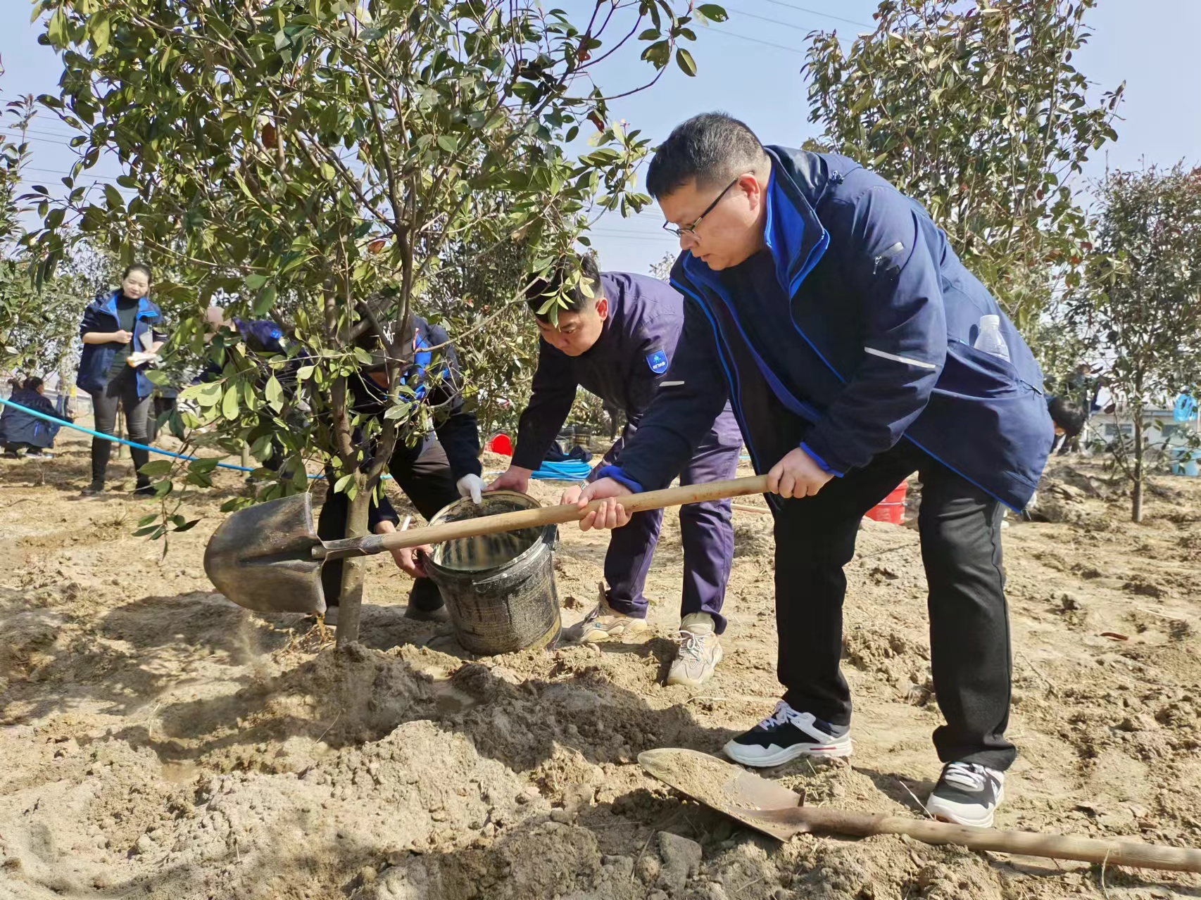 圖為市水務(wù)集團黨委書記、董事長陳永根植樹現(xiàn)場