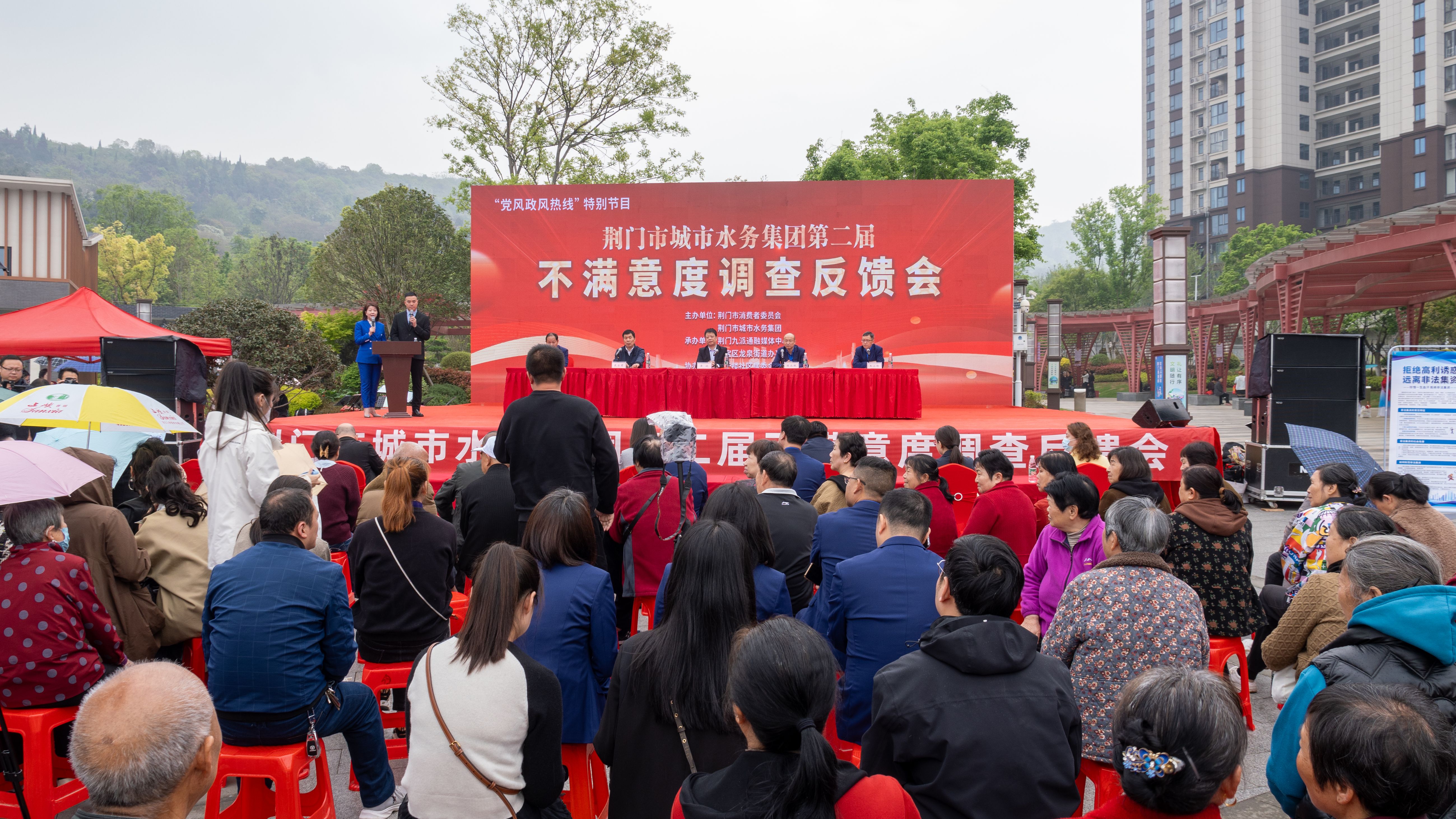 4月11日上午,由荊門市消費(fèi)者委員會(huì)主辦,荊門九派通融媒體中心和市水務(wù)集團(tuán)聯(lián)合承辦的《黨風(fēng)政風(fēng)熱線》特別節(jié)目——“荊門市城市水務(wù)集團(tuán)有限公司第二屆不滿意度調(diào)查反饋會(huì)”走進(jìn)白云樓社區(qū)居民點(diǎn),街辦、社區(qū)、媒體代表及居民用戶共200余人參加活動(dòng),荊門市消費(fèi)者協(xié)會(huì)秘書長黃波、第三方調(diào)查小組代表戴永君出席。