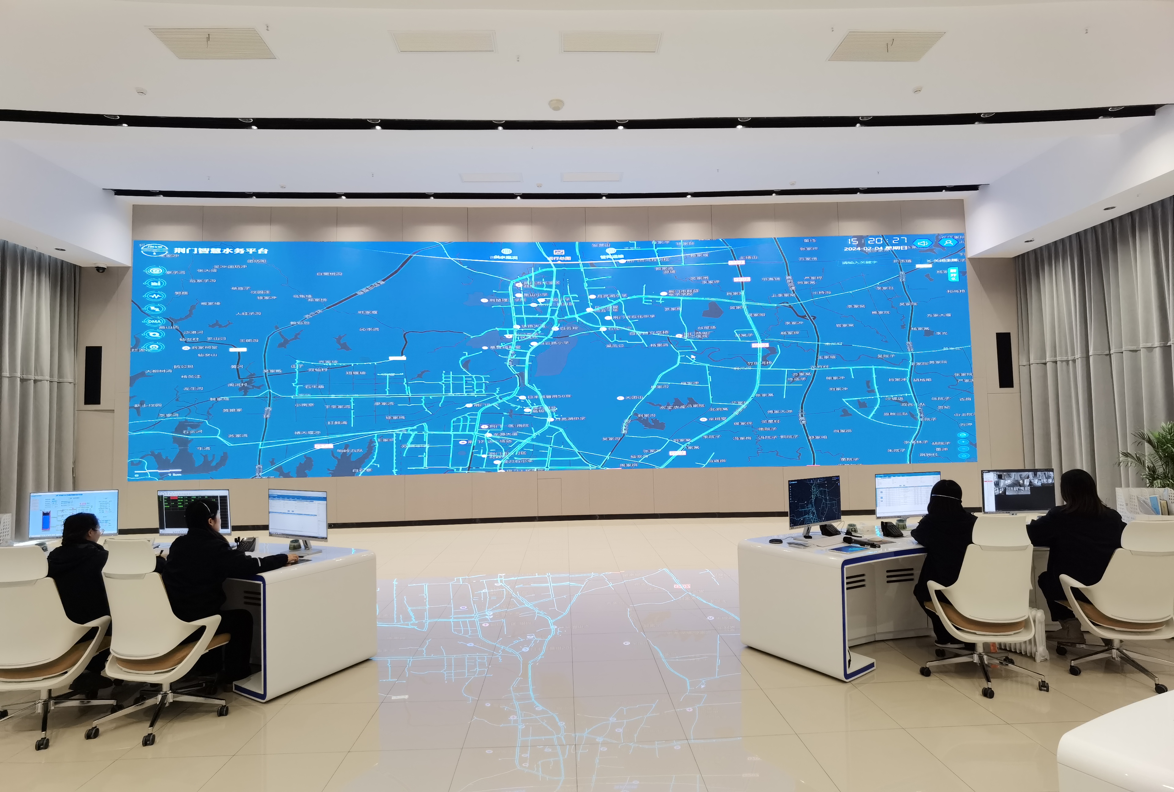 圖為市水務(wù)集團(tuán)調(diào)度指揮中心現(xiàn)場(chǎng)