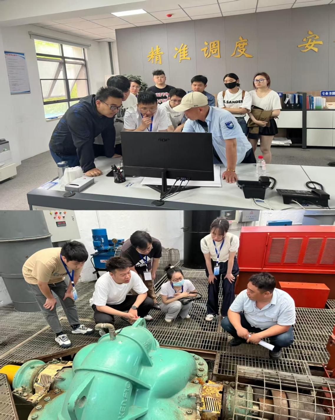 圖為新員工學(xué)習(xí)巡視關(guān)鍵要點(diǎn)、監(jiān)測(cè)設(shè)備操作及水質(zhì)生產(chǎn)流程情況