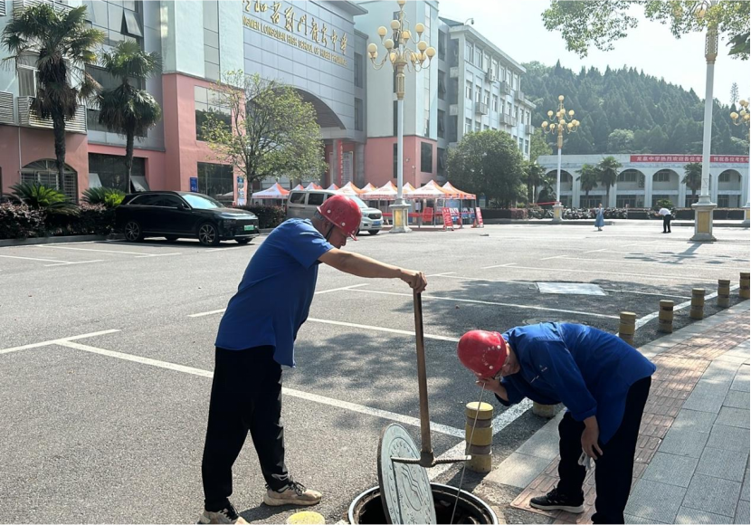 排水公司對(duì)荊門中心城區(qū)各考點(diǎn)學(xué)校周邊展開拉網(wǎng)式隱患排查工作,及時(shí)消除安全隱患,確保排水設(shè)施完好。為了應(yīng)對(duì)高考期間可能遇到的下雨積水問題,提前對(duì)考點(diǎn)周邊道路雨水管網(wǎng)進(jìn)行全面清疏,并安排重點(diǎn)點(diǎn)位值班值守,全力保障高考考生出行安全。