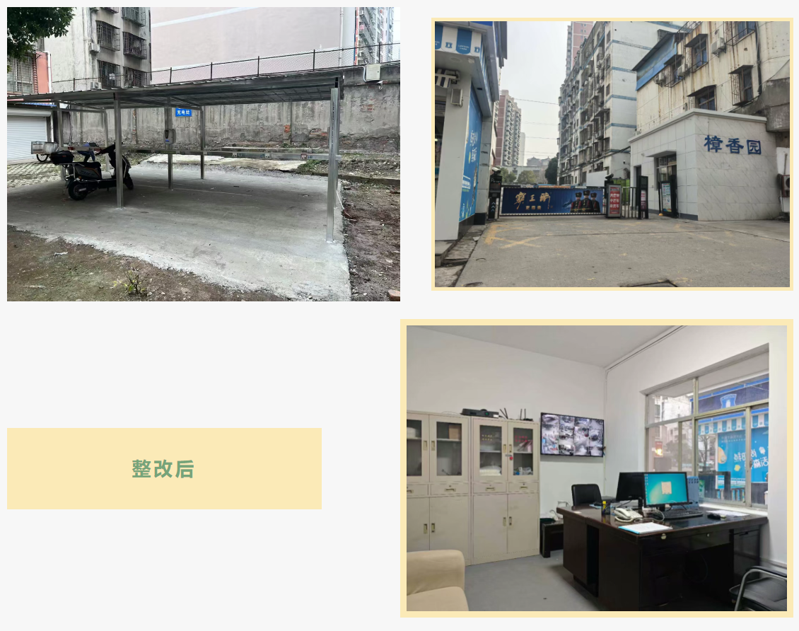鑫泉物業(yè)公司對癥施策,改造物業(yè)辦公場所,設置便民窗口,實現(xiàn)公共區(qū)域監(jiān)控全覆蓋,新增太陽能路燈,更換樓道感應燈,新建帶充電設施的非機動車棚,修剪綠植,清理雜物,小區(qū)環(huán)境煥然一新,居住體驗大幅提升。