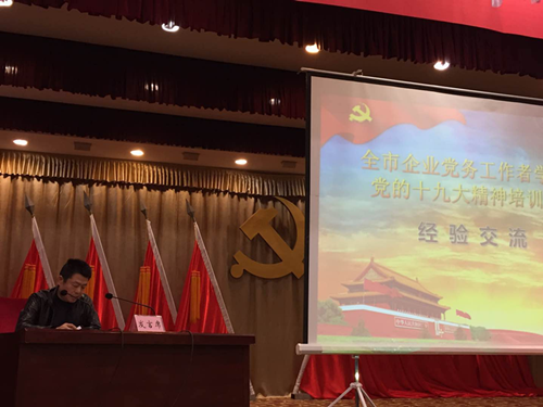 12月11日至12日,由市委組織部、市國(guó)資委聯(lián)合舉辦的全市企業(yè)黨務(wù)工作者學(xué)習(xí)黨的十九大精神培訓(xùn)會(huì)在荊門賓館召開。會(huì)上,四家企業(yè)進(jìn)行黨建經(jīng)驗(yàn)交流,市供水總公司黨委副書記、紀(jì)委書記徐黎明就加強(qiáng)企業(yè)基層黨建工作作交流發(fā)言。